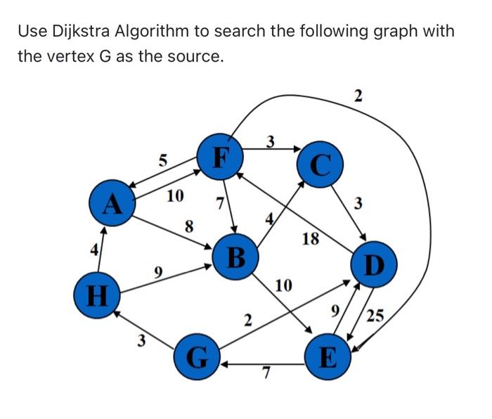 Solved Use Dijkstra Algorithm to search the following graph | Chegg.com