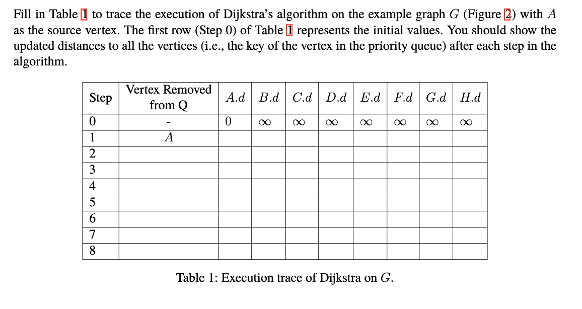Solved Fill in Table 1 to trace the execution of Dijkstra's | Chegg.com