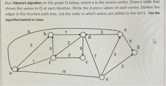 Solved Run Dijkstra's algorithm on the graph G below, where | Chegg.com