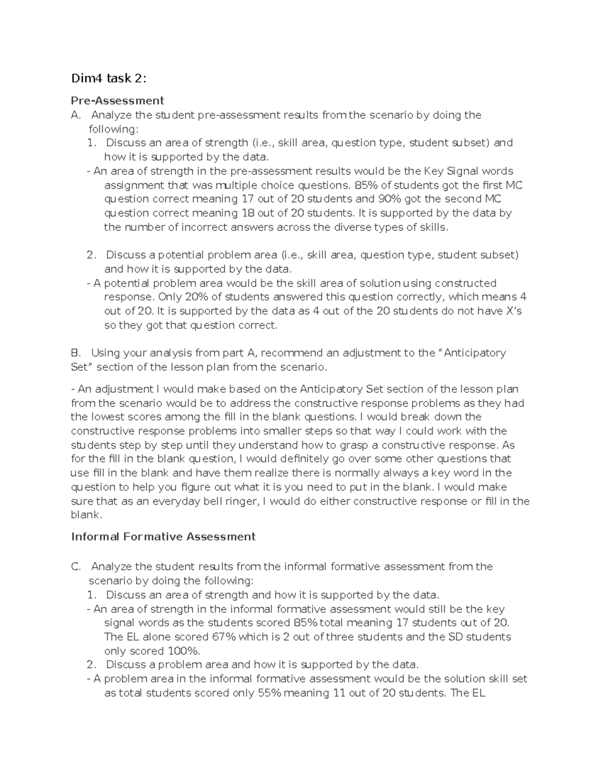 DIM4 TASK 2: ASSESSING STUDENT LEARNING AND INSTRUCTION STRATEGIES ...