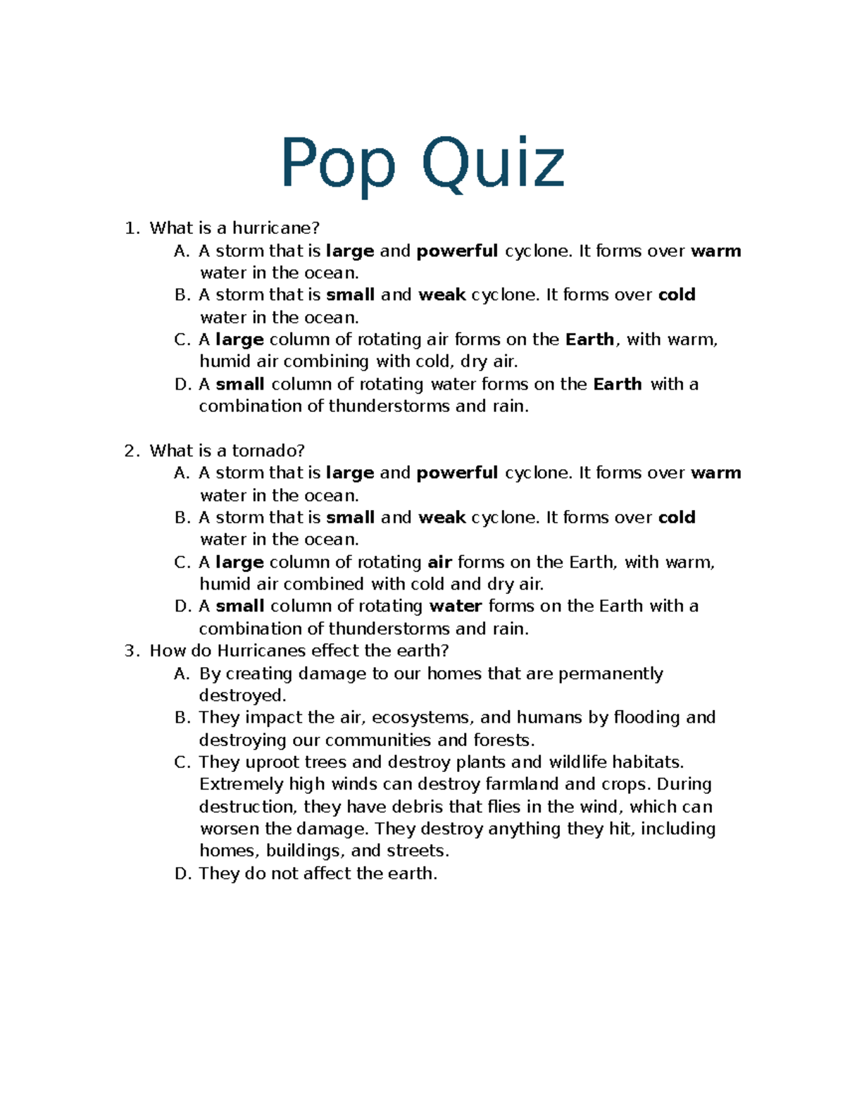 DIM4 Task 1 Assessment Planning attachment - Pop Quiz 1. What is a ...