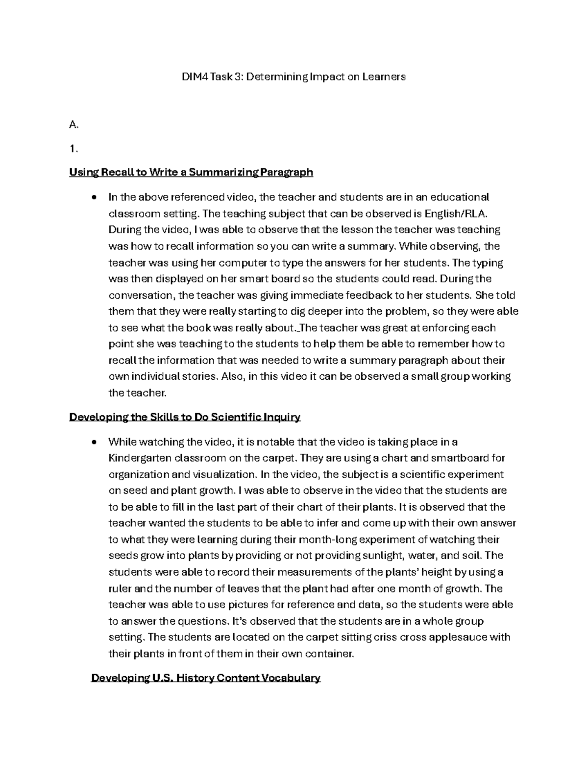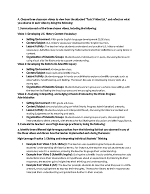 D093 DIM4 Task 3: Analyzing Videos on Student Learning Impact - Studocu