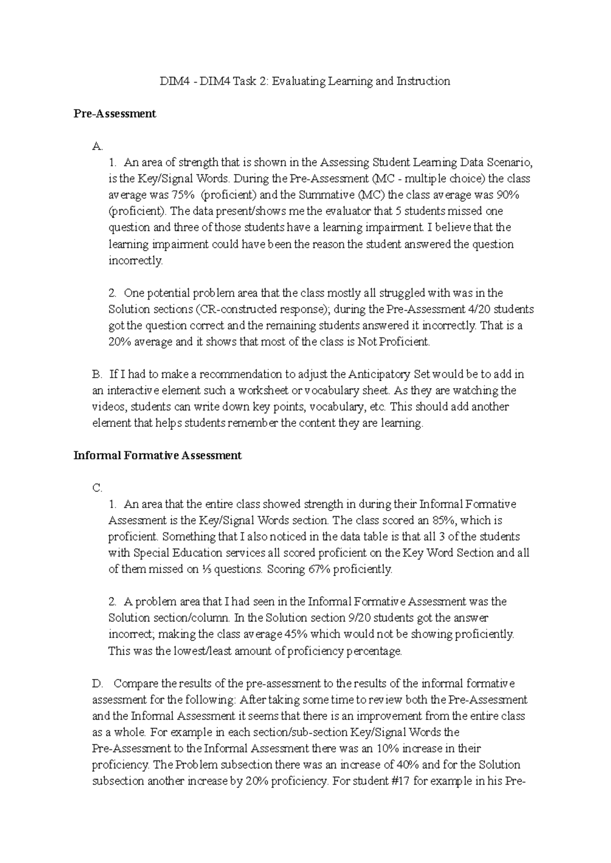 DIM4 TASK 2 - Assessing Impact on Student Learning - DIM4 TASK 2 ...
