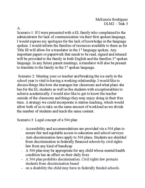 D093 - DIM4 TASK 3: DETERMINING IMPACT ON LEARNERS - A. Identify one ...