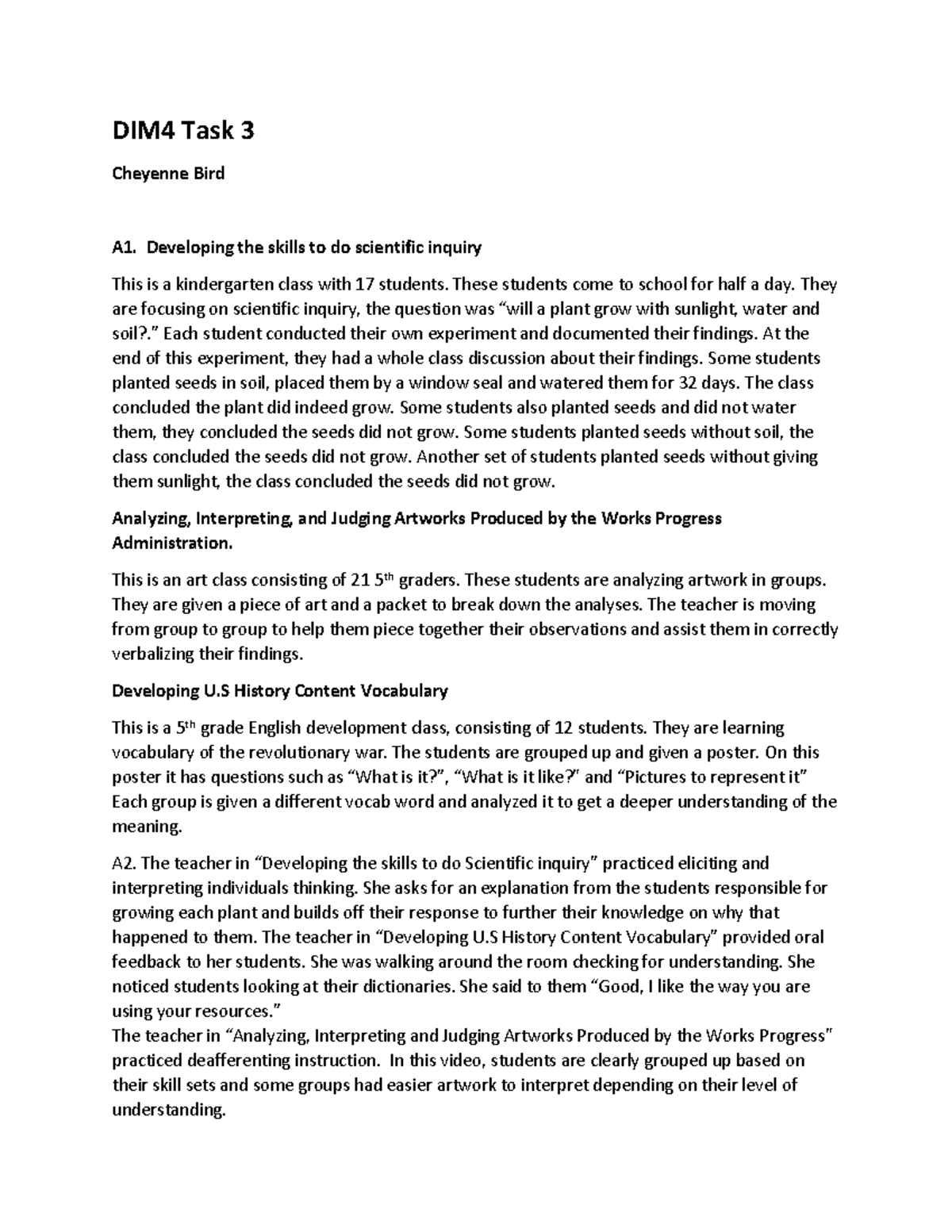 DIM4 Task 3 - Scientific Inquiry and Art Analysis in K-5 Classes - Studocu