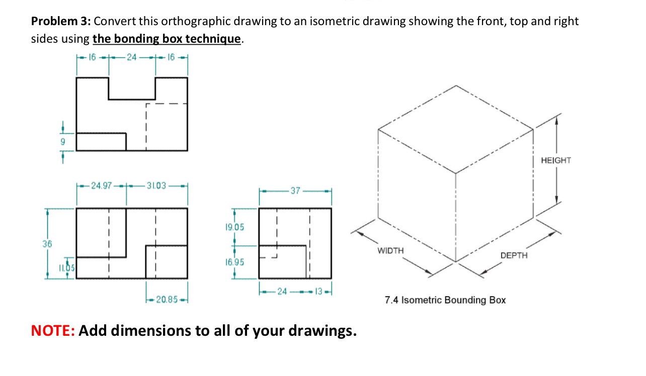 Problem 3: Convert this orthographic drawing to an | Chegg.com