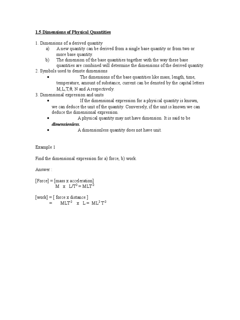 1.5 Dimensions of Physical Quantities: Dimensionless | PDF | Teaching ...