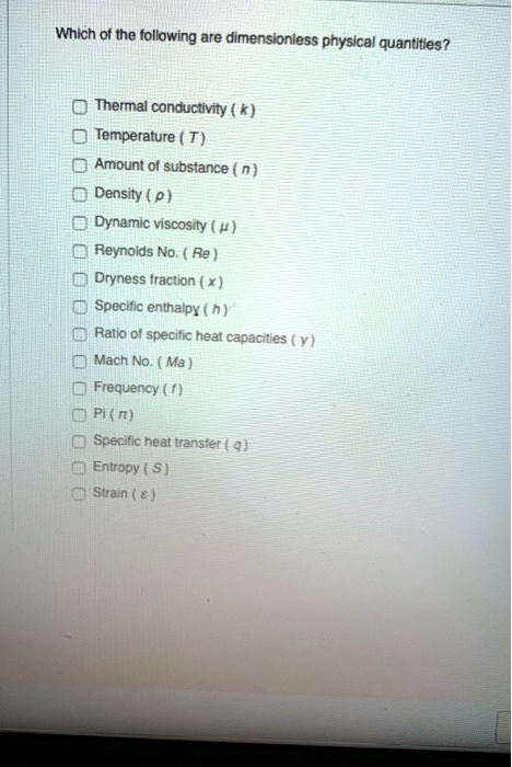 SOLVED: Which of the following are dimensionless physical quantities ...