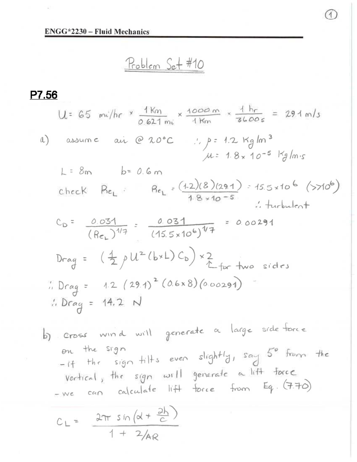 Fluid Mechanics Problem Set 10 (F23) - Solutions - Studocu