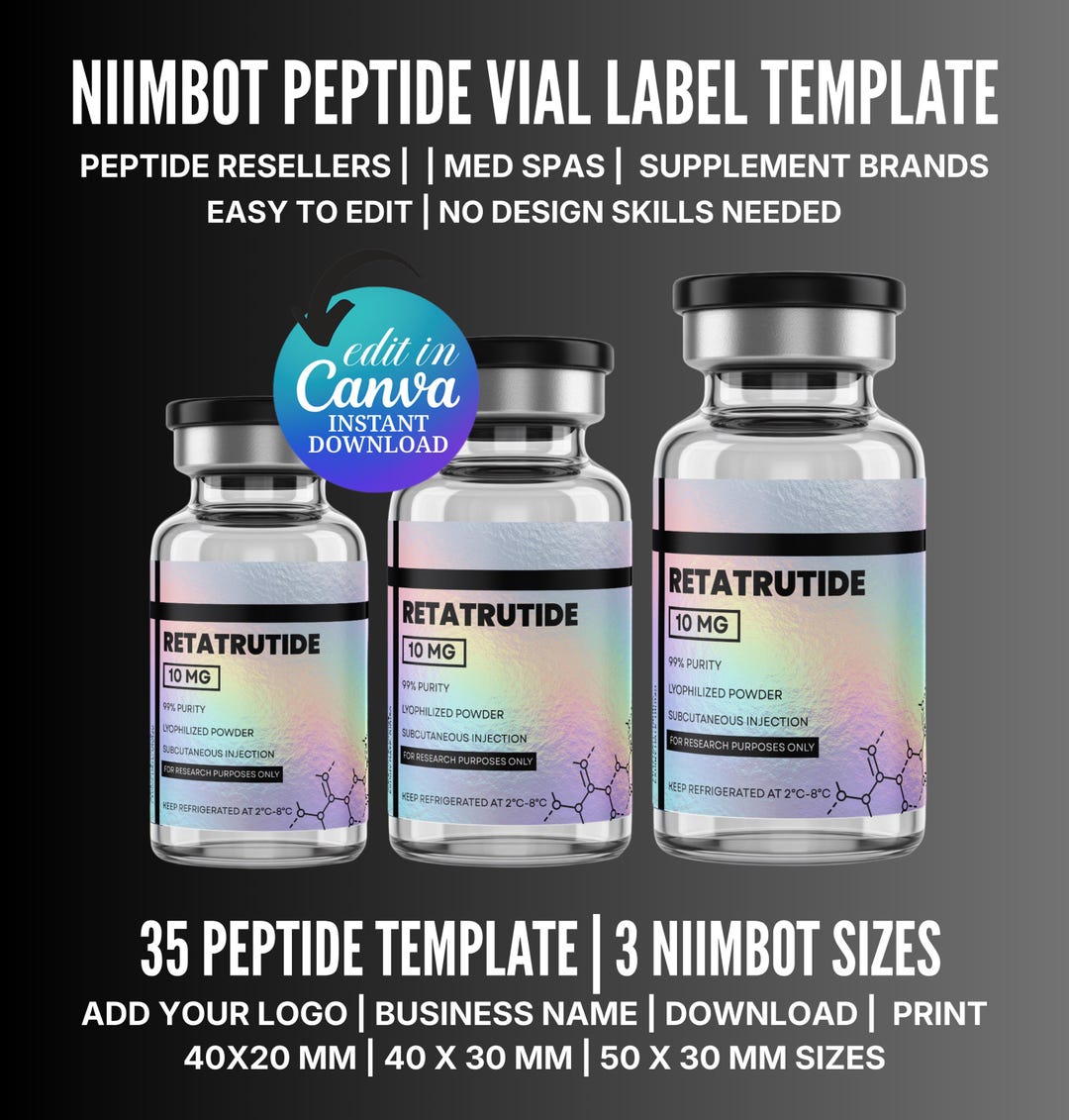 Niimbot Peptide Label Template, Retatrutide Peptide Label, Editable ...