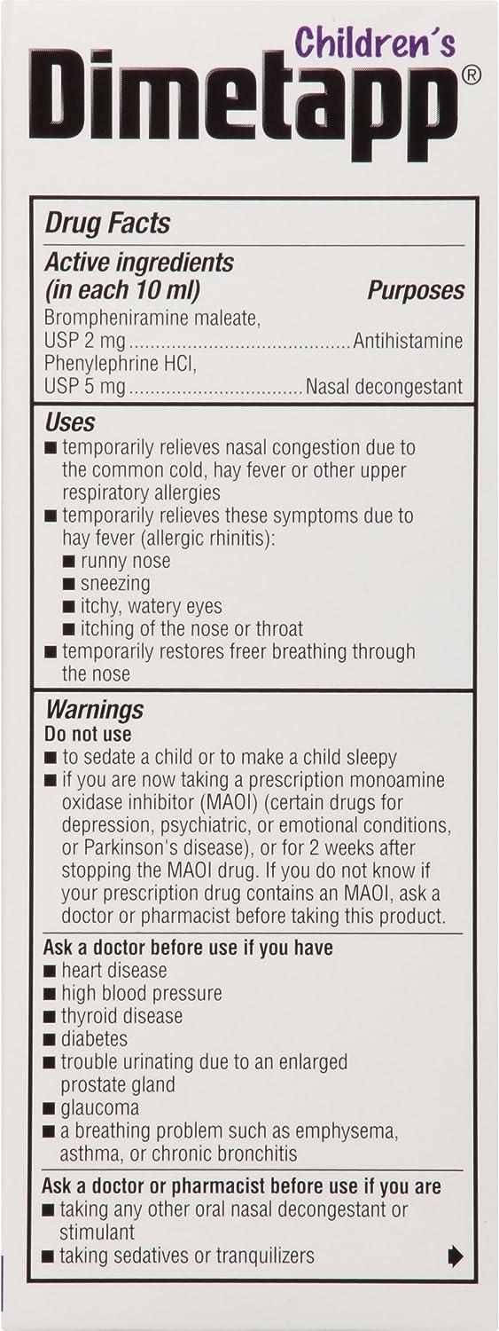 Dimetapp Children's Decongestant & Allergy Relief, Multi-Symptom, Runny ...