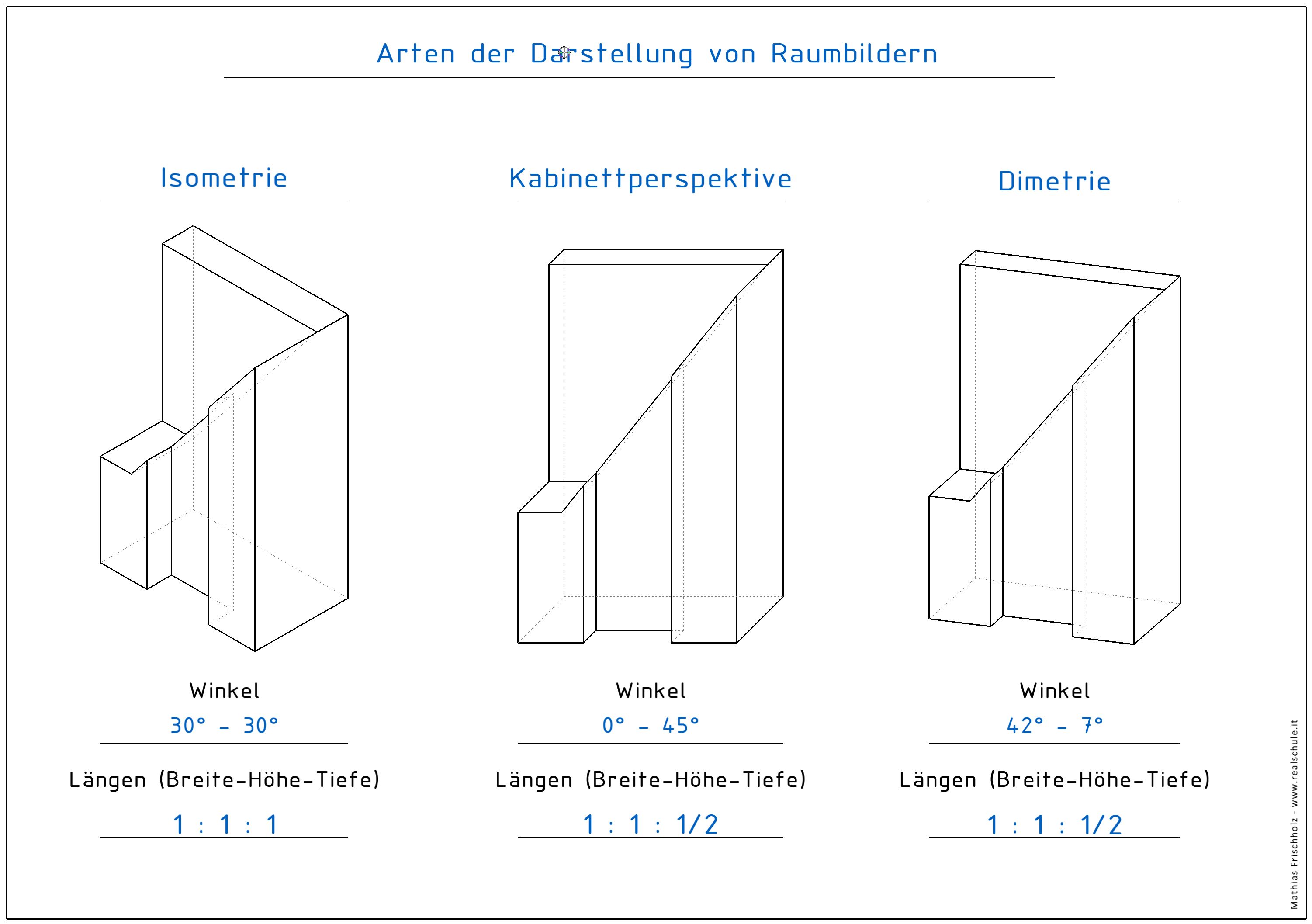 [Arbeitsblatt] Darstellungsformen: Isometrie, Trimetrie, Dimetrie ...