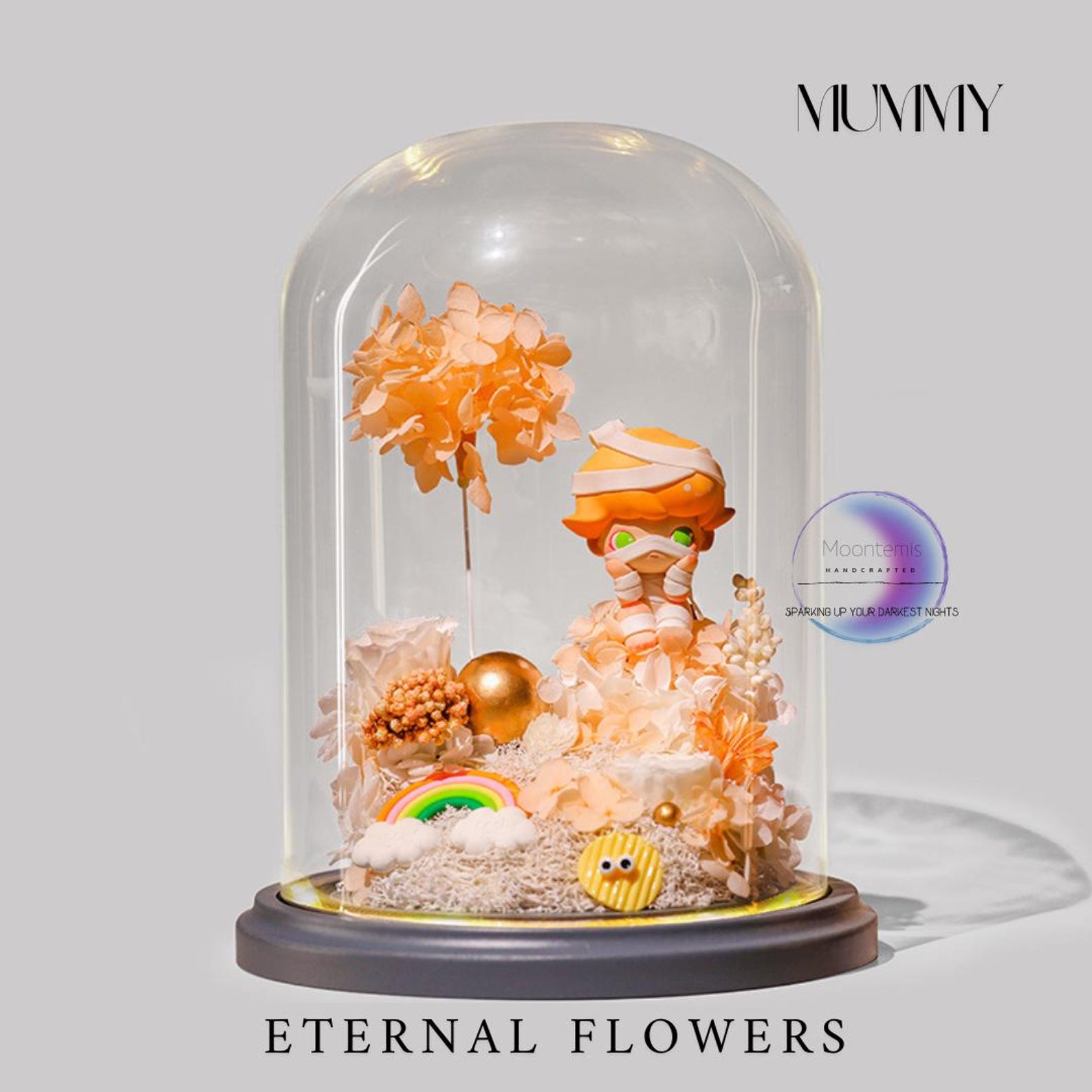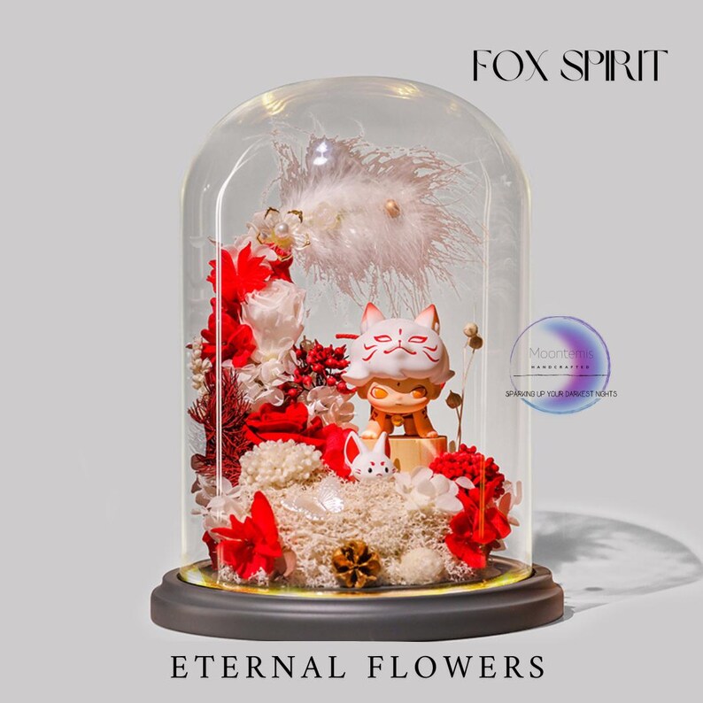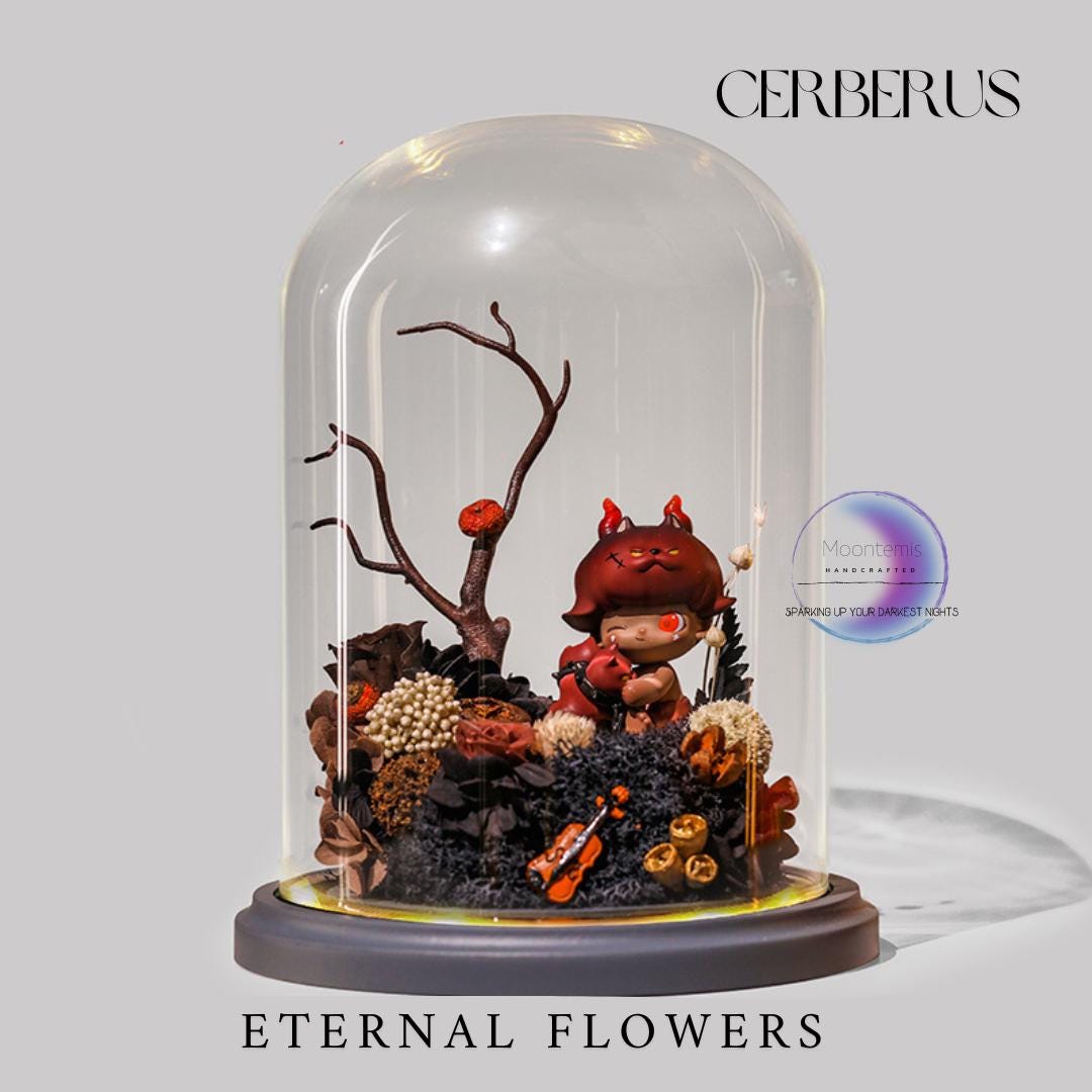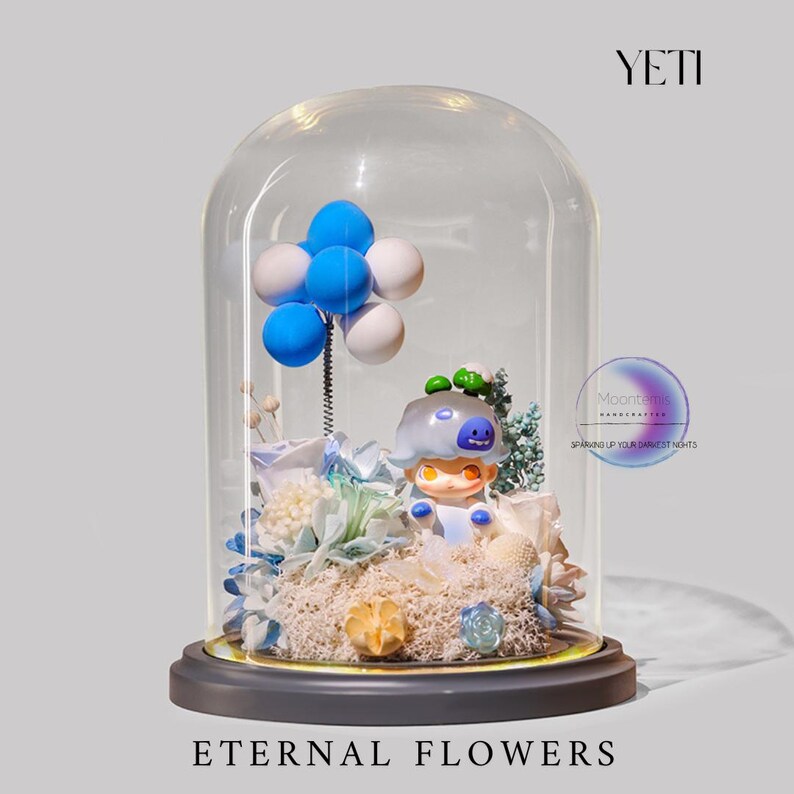 Eternal Flowers LED Light: Dimoo Figure in Glass Dome - Etsy