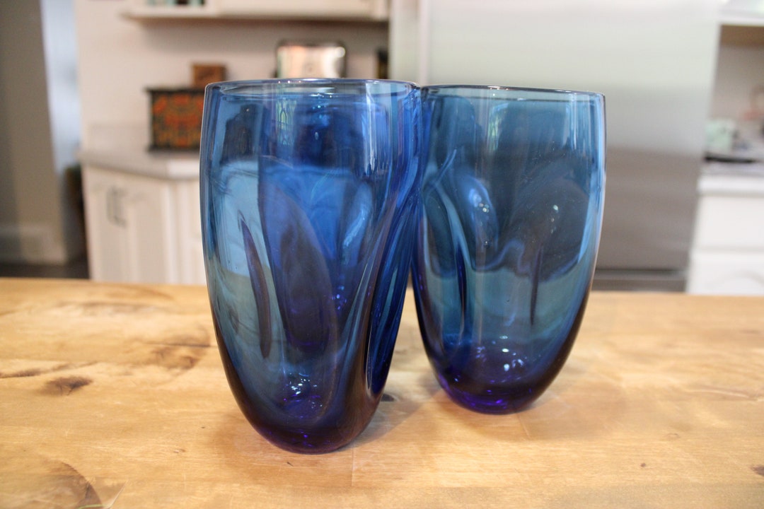 Large Thumbprint Cobalt Blue Dimpled Drinking Glasses; Colonial Daisy ...