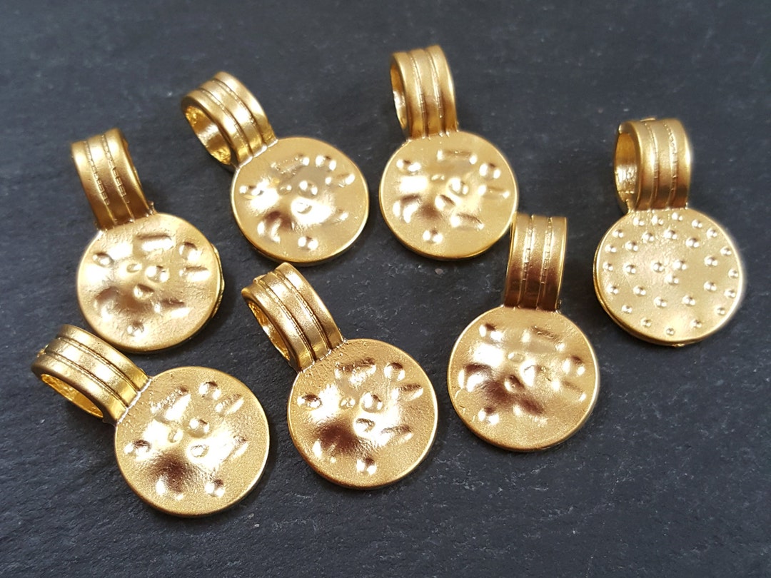 Hammered Dimple Disc Charms Ethnic Tribal Round 22k Matte Gold Plated ...