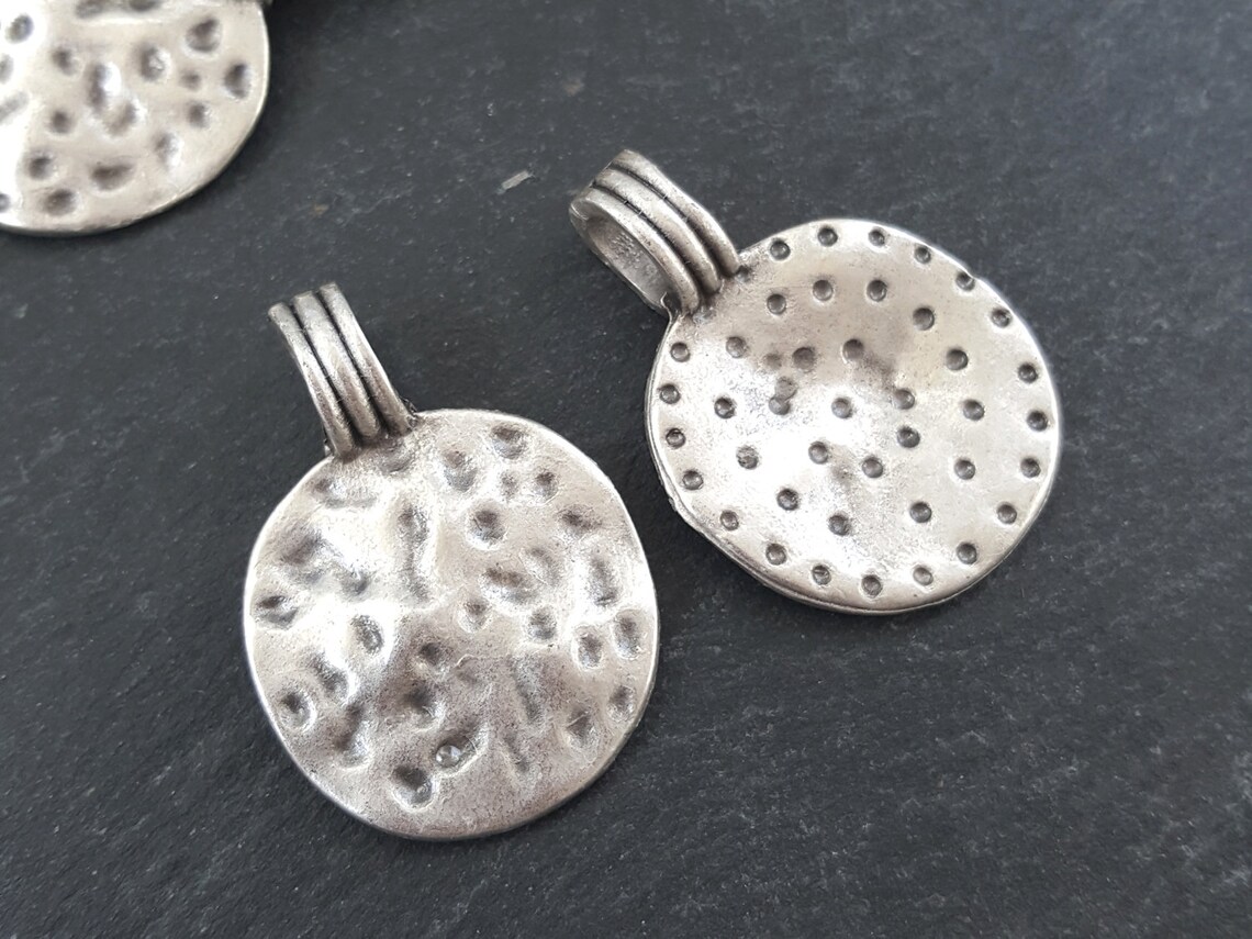Hammered Dimple Disc Pendant Ethnic Tribal Round Matte Antique Silver ...