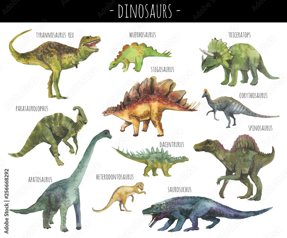 Dinosaurs set. Types of dinosaurs isolated on white. Stegosaurus ...