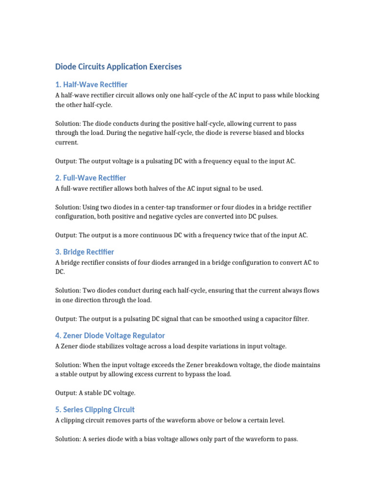 SOLUTION: Summary and exercises for diode circuit applications - Studypool