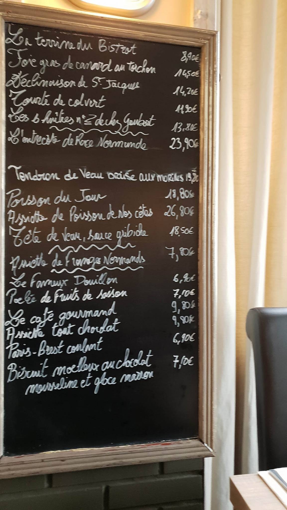 Menu au Bistrot des Barrieres, Dieppe