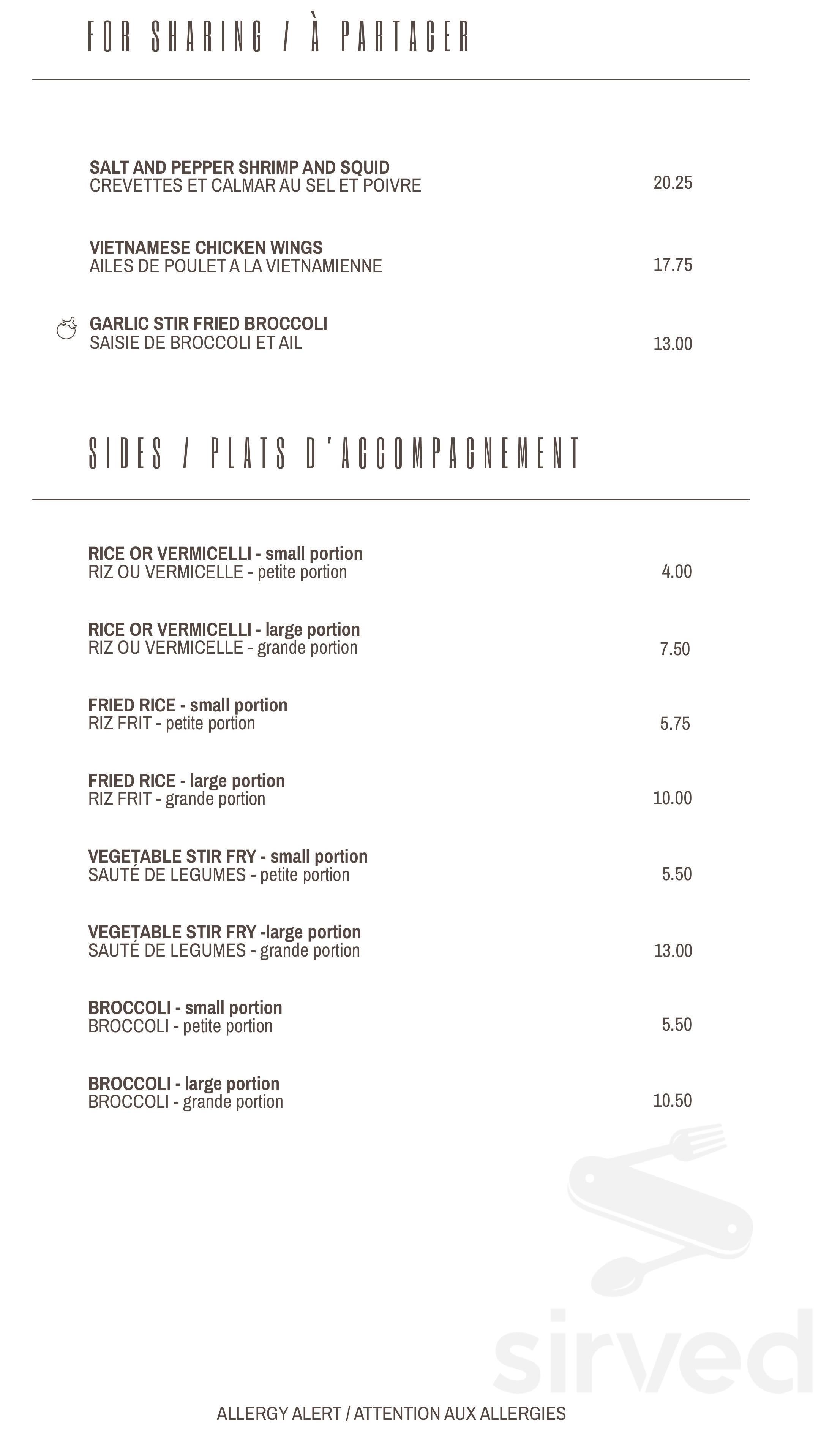 Menu - Dieppe NB's Thanh's Palace | Sirved