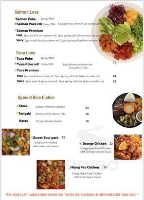 Sugar Roll Japanese Cuisine menu in Dieppe, New Brunswick, Canada