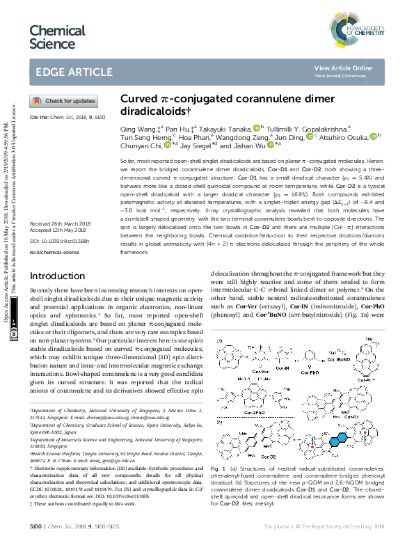 (PDF) Curved π-conjugated corannulene dimer diradicaloids