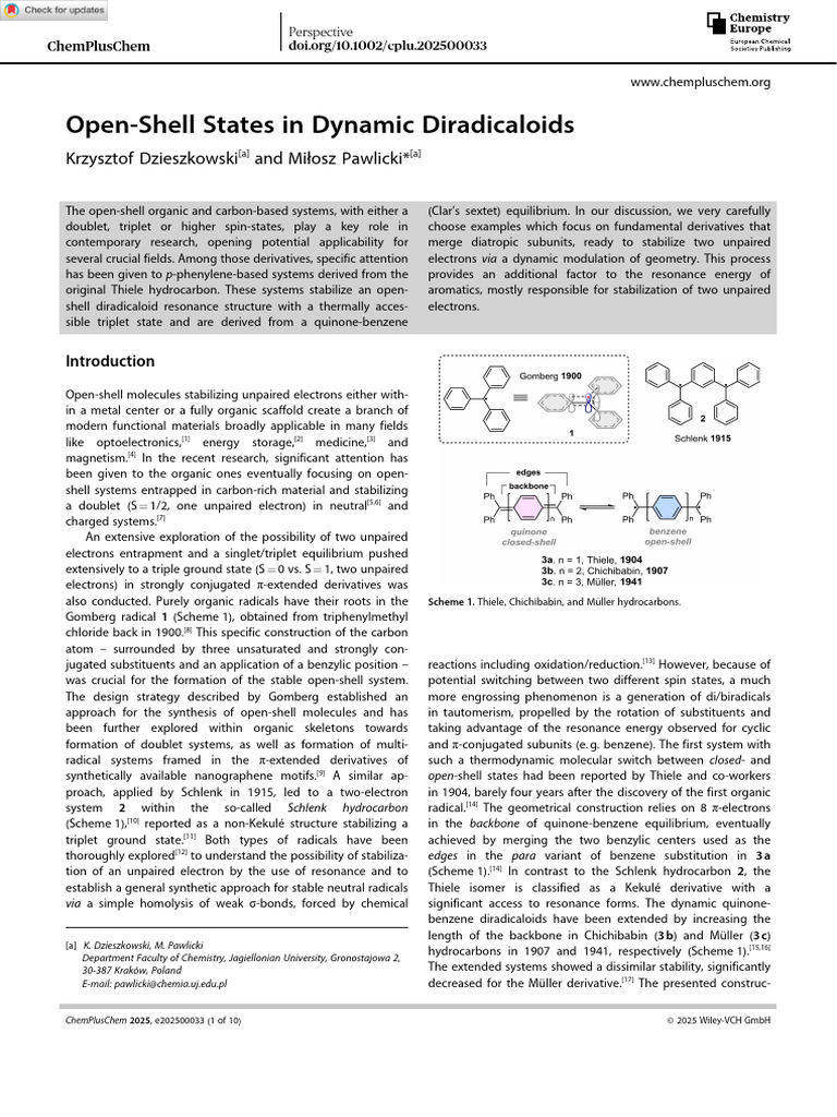 Open‐Shell States in Dynamic Diradicaloids - Dzieszkowski - 2025 ...