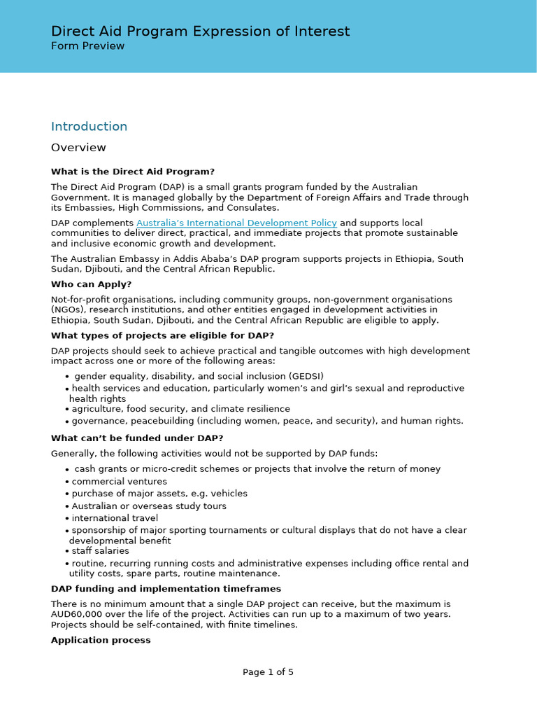 Fillable Online Direct Aid Program - Australian High Commission in ...