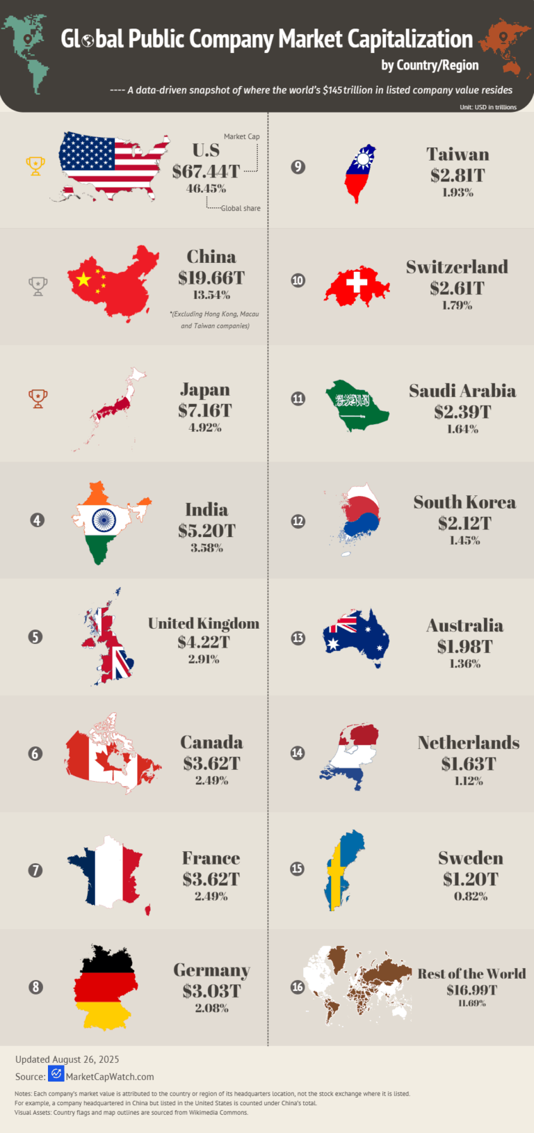Global Public Company Market Capitalization by Country - Brilliant Maps