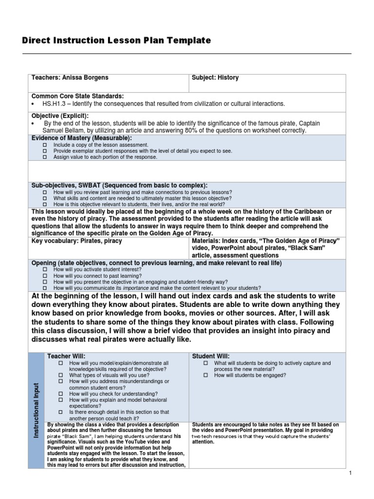 Direct Instruction Lesson Plan Template: History | Download Free PDF ...