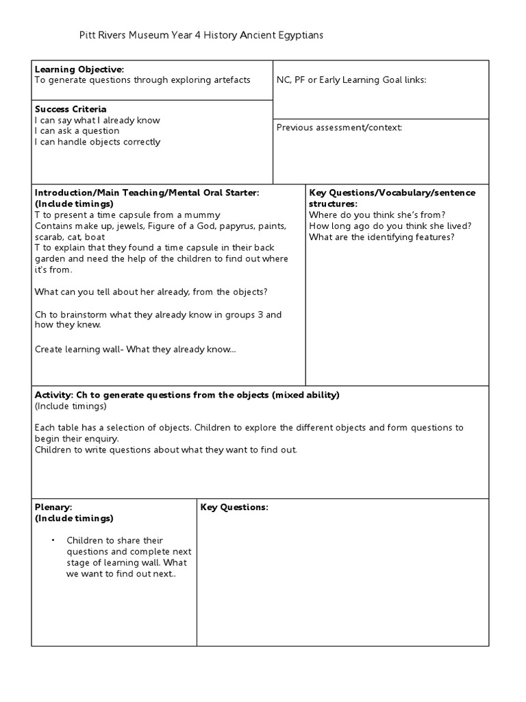 History Lesson Plan Template New History Lesson Plan Template Sample ...