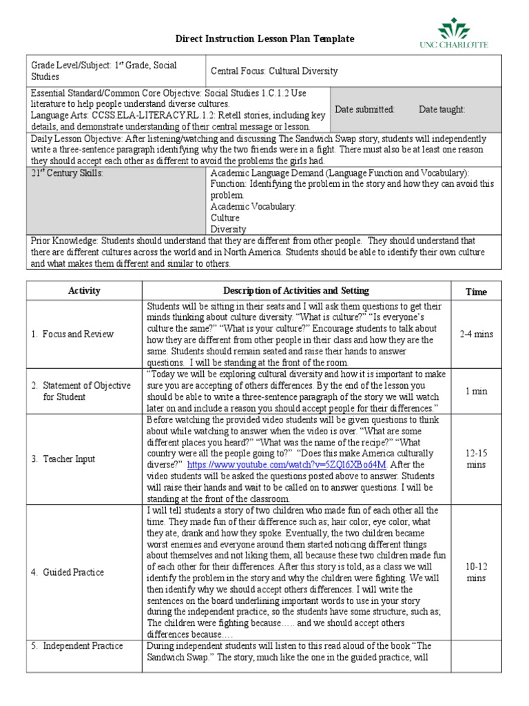 Direct Instruction Lesson Plan Template | PDF | North Carolina | Lesson ...