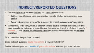 4 Reported speech: reported questions (indirect questions),…