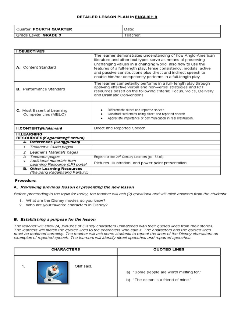 Direct and Reported Speech | PDF | Learning | Question
