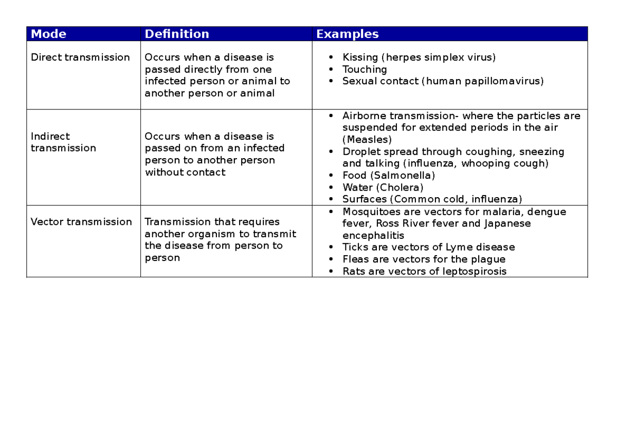 Modes of Transmission: Direct, Indirect, and Vector (Bio 101) - Studocu