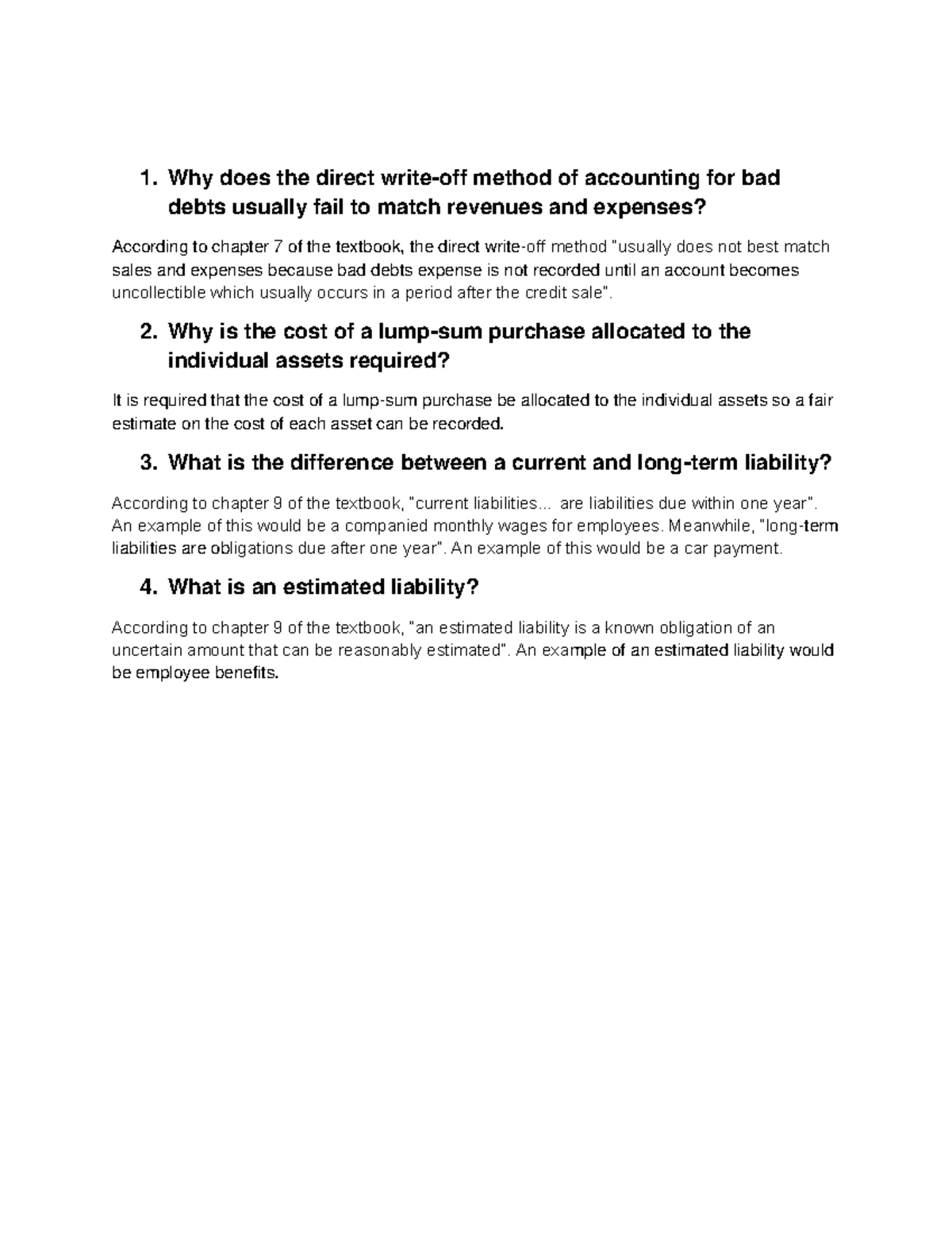 Discussion 4-1.docx - 1. Describe fully both the direct write-off ...