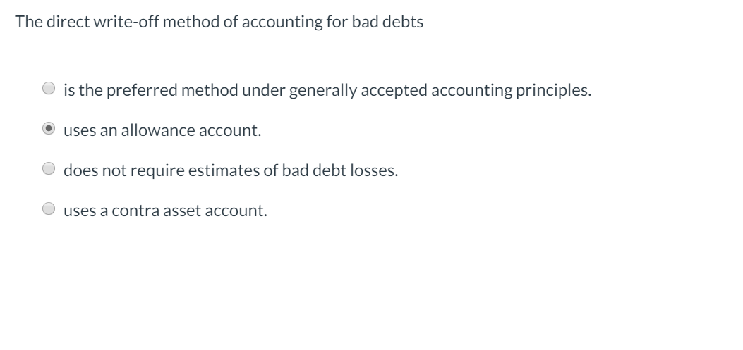 Solved The direct write-off method of accounting for bad | Chegg.com