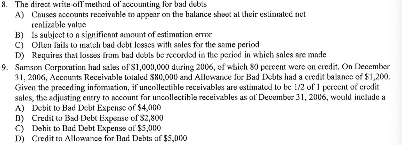 Solved 8. The direct write-off method of accounting for bad | Chegg.com