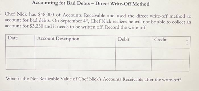 Solved Accounting for Bad Debts - Direct Write-Off Method | Chegg.com