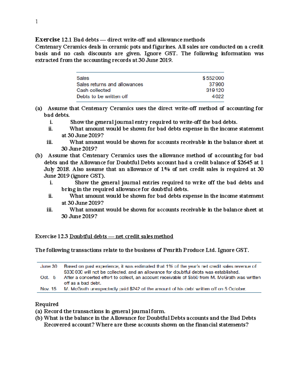 Tutorial Question 12 - 1 Exercise 12 Bad debts — direct write-off and ...