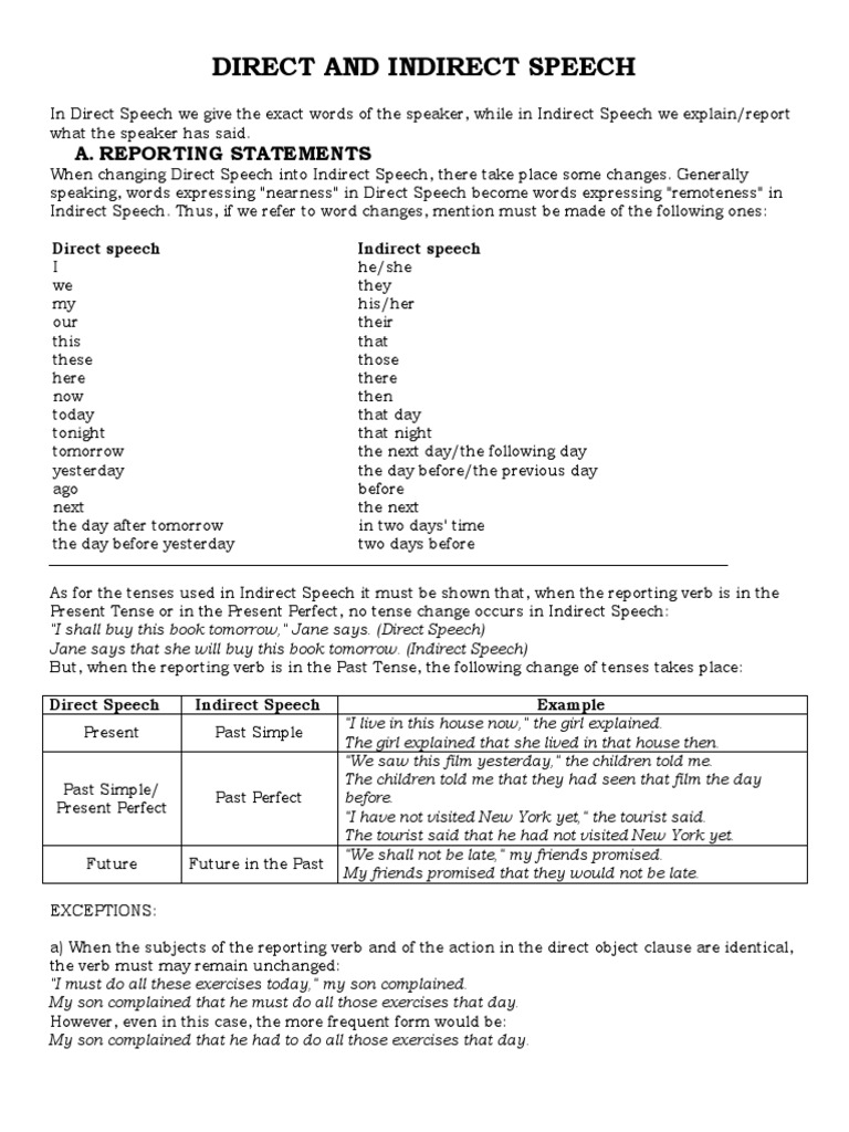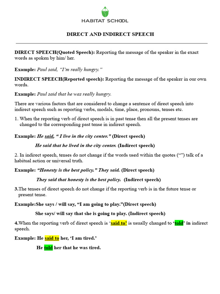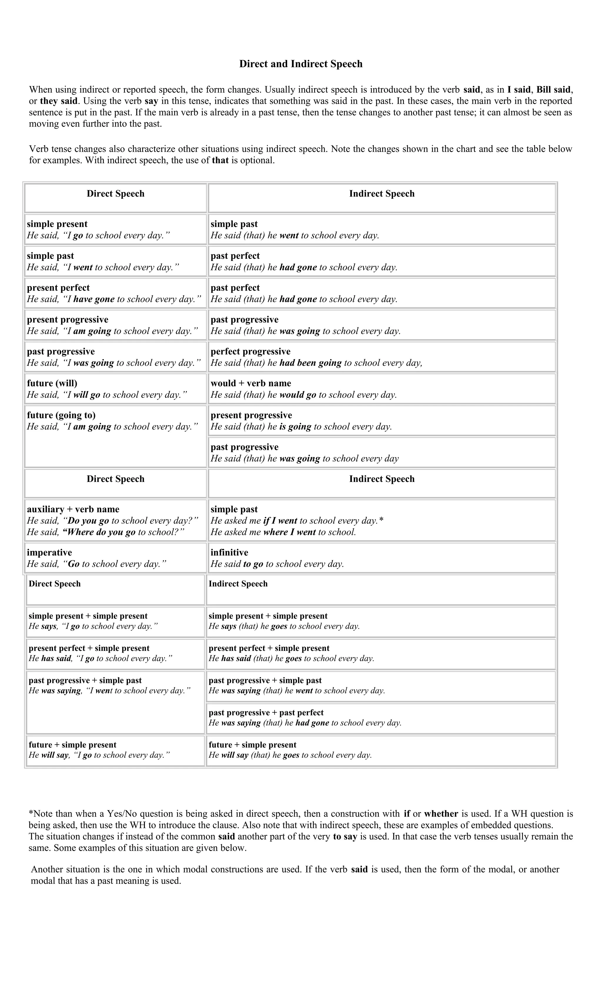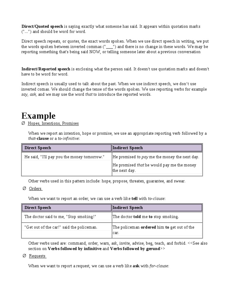 Direct and Indirect Speech: Useful Rules and Examples - ESL Grammar ...