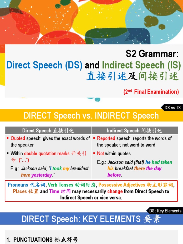 S2 Grammar 10 - Direct Speech and Indirect Speech PDF | PDF | Language ...