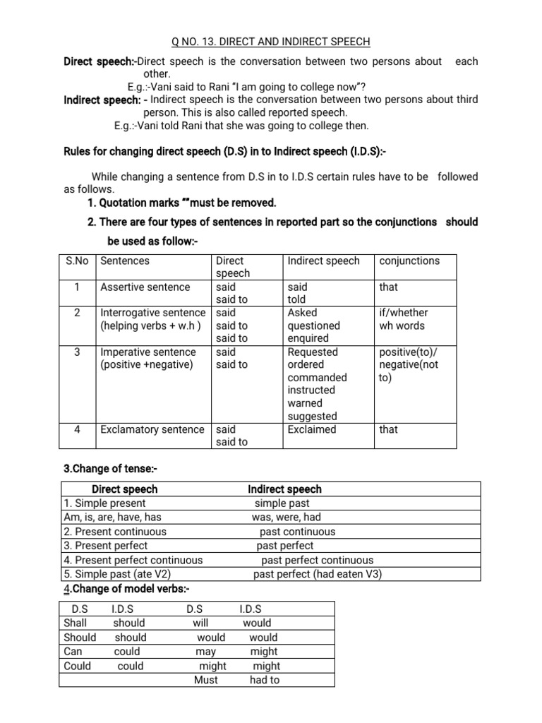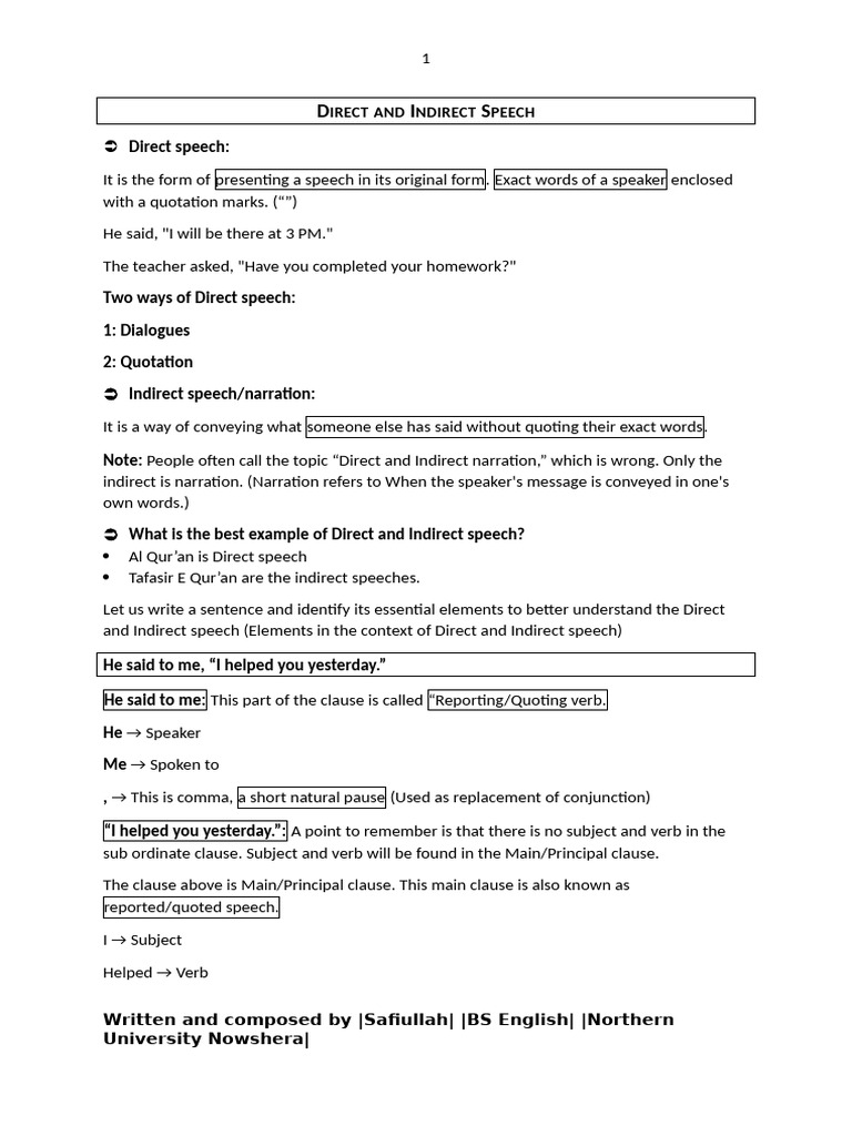 SOLUTION: CSS Notes Direct Indirect Speech All Grammar Rules - Studypool