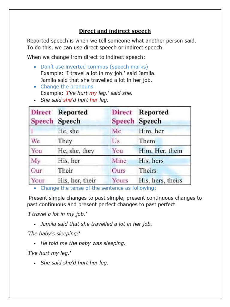 Direct and Indirect Speech – Rules & Examples - Blue Grammar