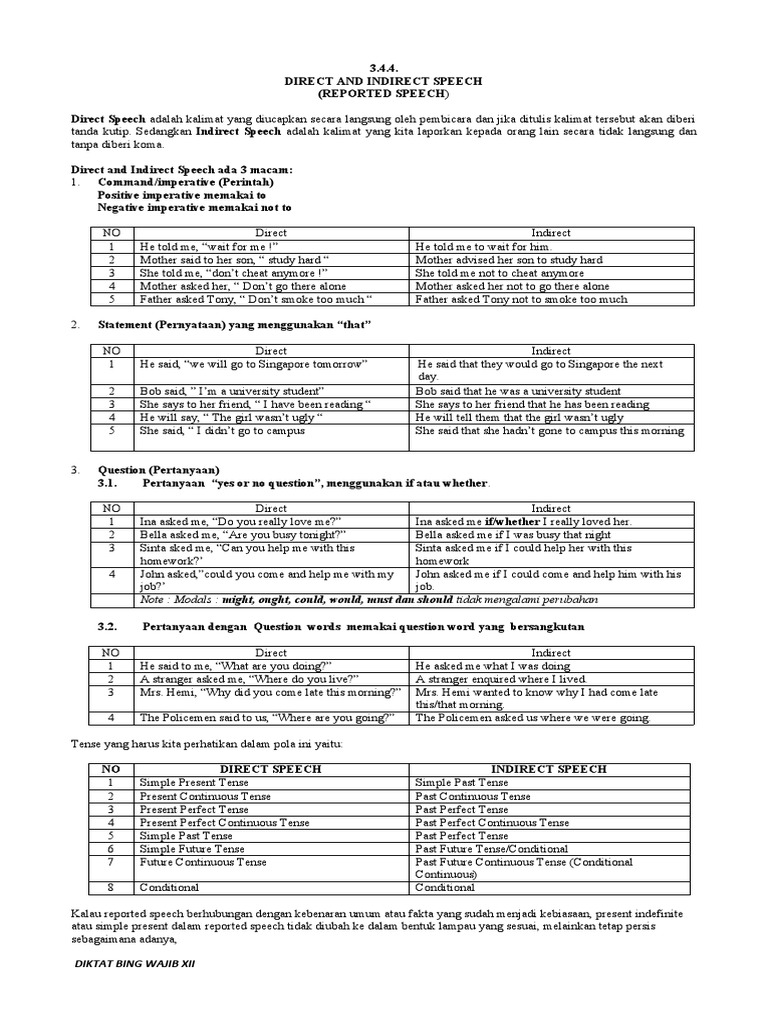 Pengantar Kalimat dalam Direct dan Indirect | PDF | Semantic Units ...