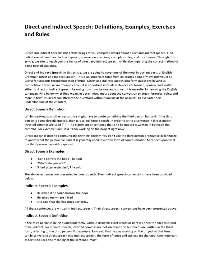 Direct speech and Indirect Speech: Rules, Examples & Free Conversion ...