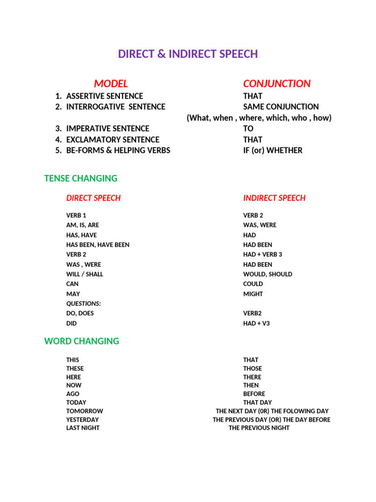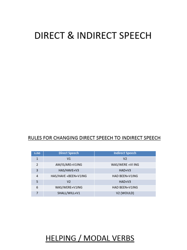 Direct and Indirect Speech, Definition and Rules Chart PDF