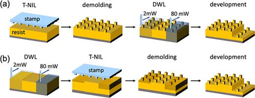 Schematics of direct-write (maskless) lithography and patterning scheme ...