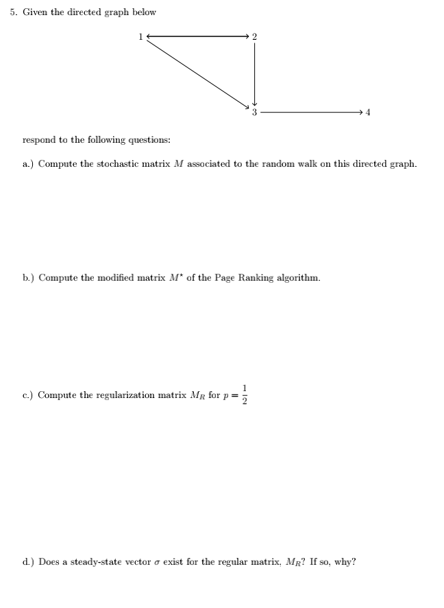 Solved 5. Given the directed graph below 1 4 respond to the | Chegg.com
