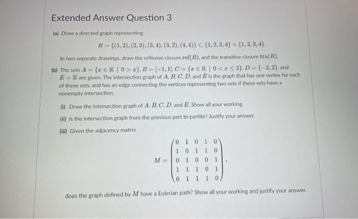 Solved Extended Answer Question 3 (a) Draw a directed graph | Chegg.com